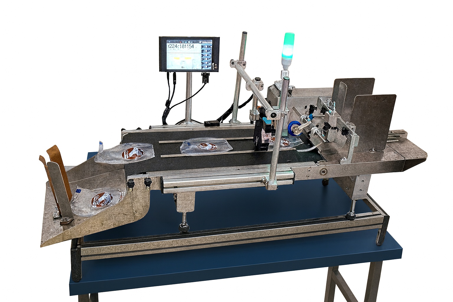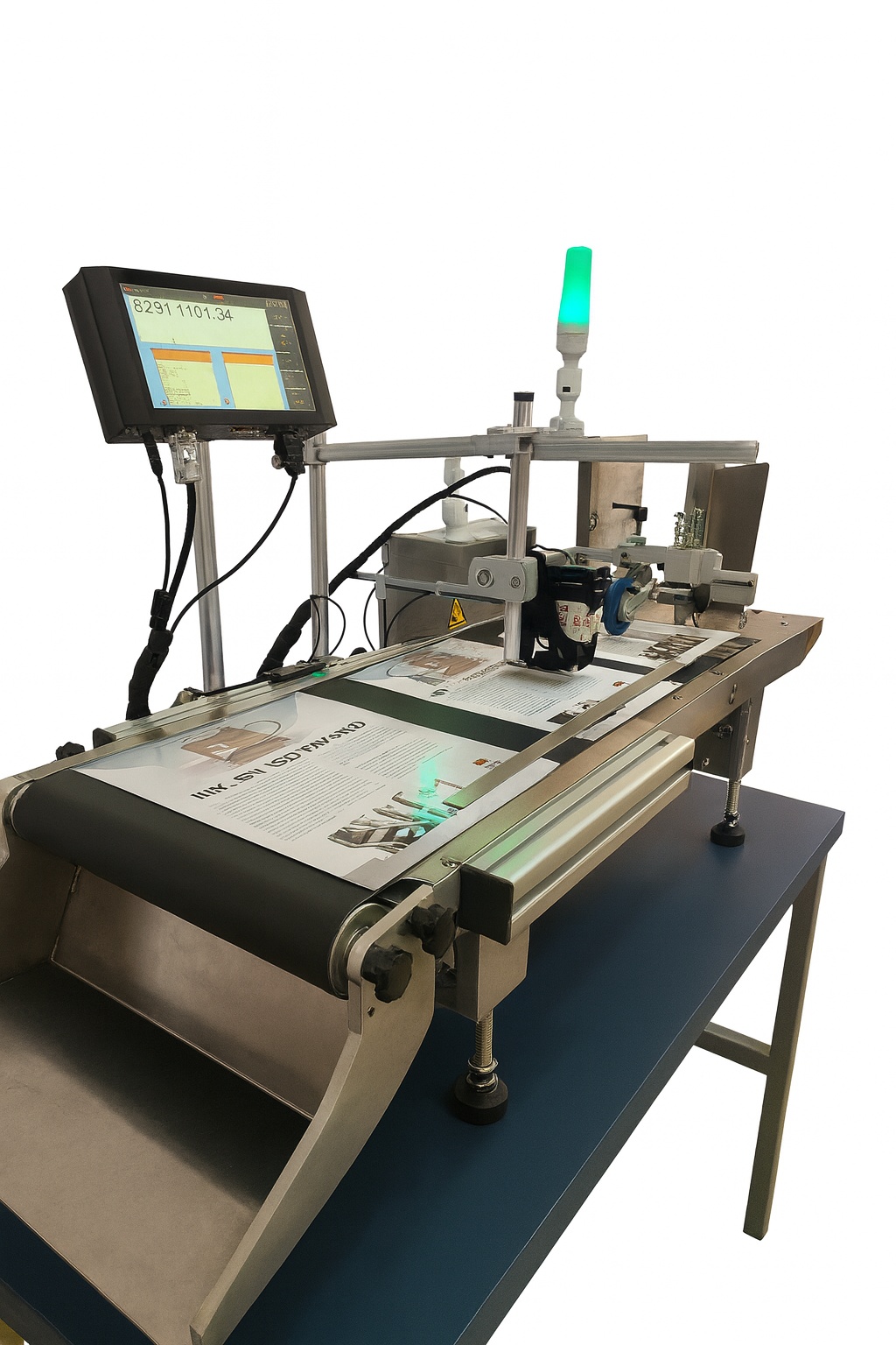 Enquanto o dispensador posiciona cada embalagem com precisão, a TIJ T4 realiza a codificação de dados variáveis em alta definição, como datas, lotes, códigos de barras e logotipos.